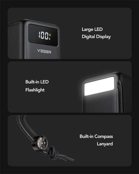 Η μεγάλη ψηφιακή οθόνη LED δείχνει ξεκάθαρα την υπολειπόμενη ισχύ. Και ο φακός υποστηρίζει 3 λειτουργίες (Χαμηλή/Υψηλή/SOS), σας βοηθούν να ξεπεράσετε σκοτεινά μέρη και καταστάσεις έκτακτης ανάγκης.